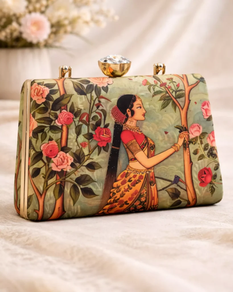 Elegant Indian Art Clutch – Handcrafted Luxury Bag