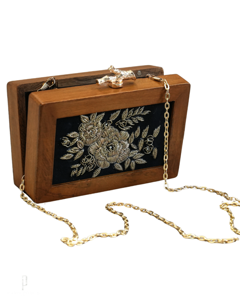 Made with a durable hard body and finished with a smooth matte black surface, it comes with a high-quality gold chain that enhances the premium look. Lightweight, stylish, and spacious enough for essentials, this clutch is ideal for weddings, festive events, evening parties, and gifting.